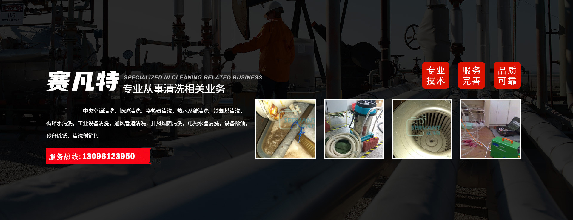 工業(yè)清洗工業(yè)制冷、供熱設備、各種儲罐、通水設備、鍋爐、循環(huán)水水處理與水質(zhì)管理,冷卻塔、風管、工業(yè)排風煙囪清洗消毒,凍庫制冷設備、風